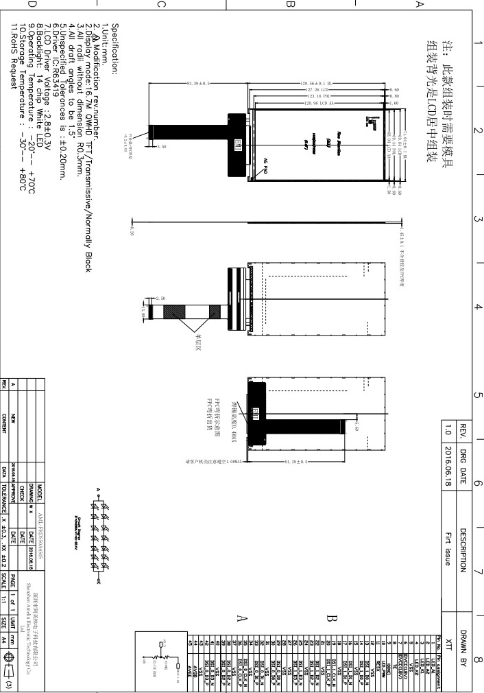 产品大小71.04(W) x129.561(H)x1.45(D)可视区域68.04(W) × 120.96(H)