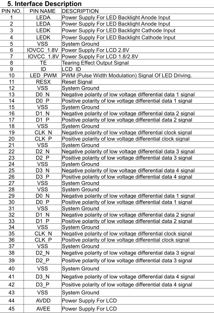 接口MIPIpin口数:45 PIN