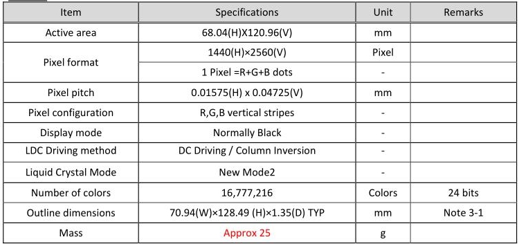 | 产品大小 | :70.94(W) x128.49(H)x1.35(D) | 可视区域 | :68.04(W) × 120.96(H) |