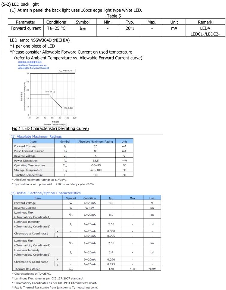 | 亮度 | :315 - 450 CD/M2 | IC 型号 | :R63419 |