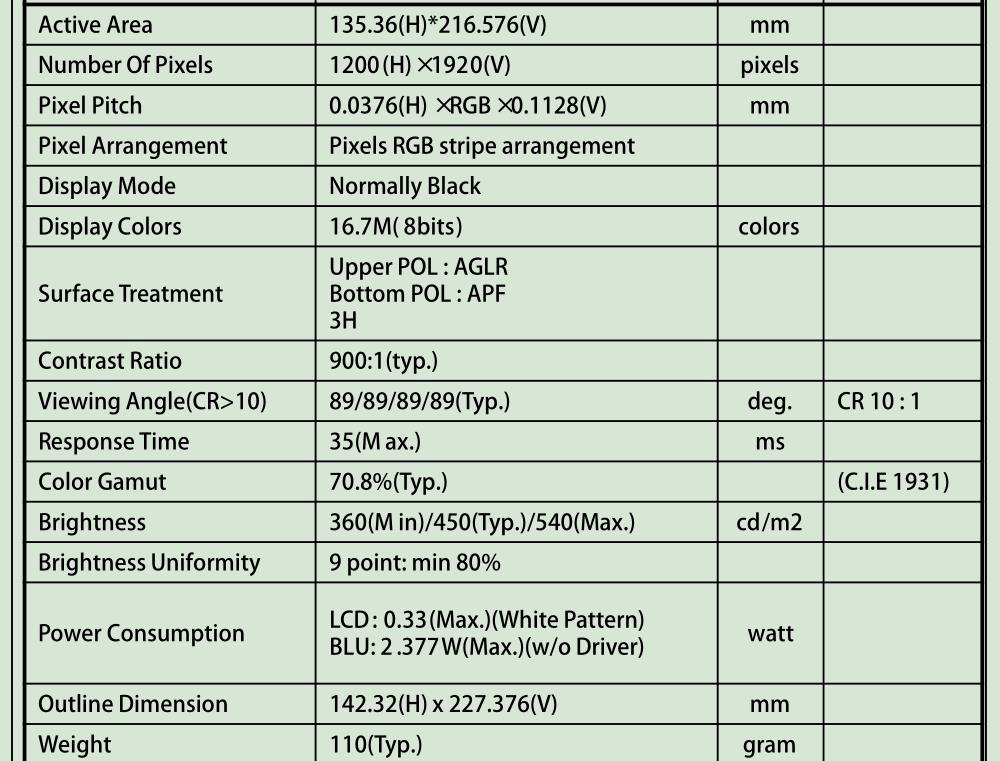 10.1寸TFT LCD 液晶显示屏1200*1920分辨率 MIPI接口IPS全视角