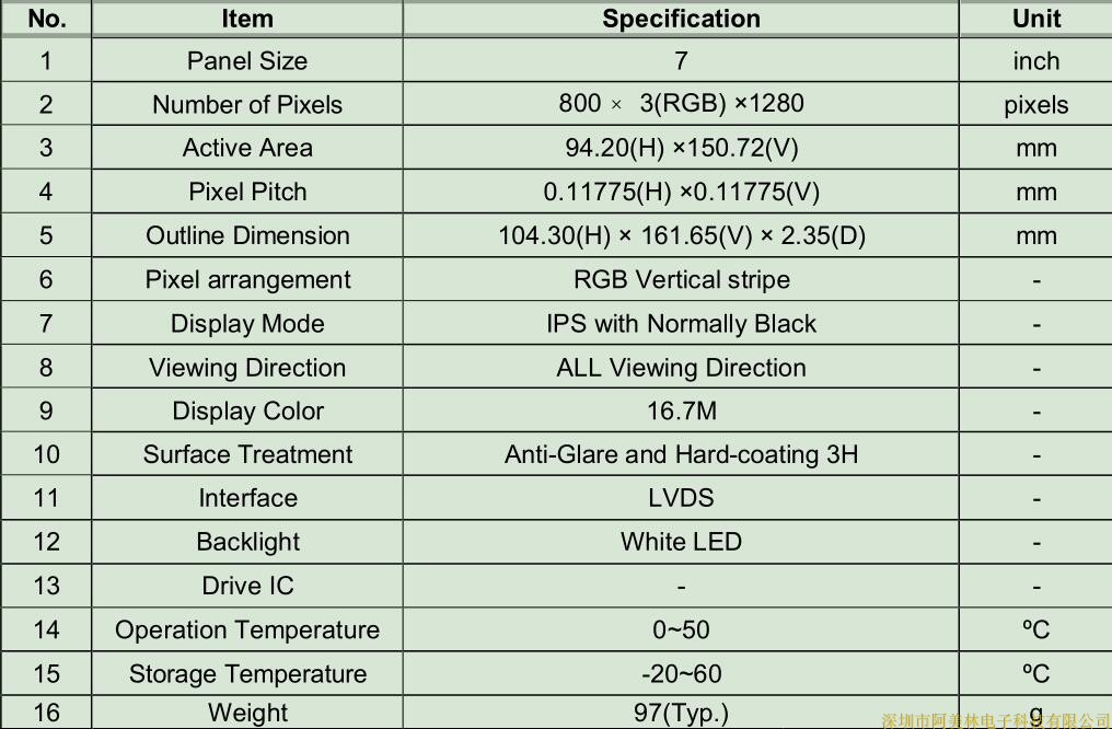 高清7寸LCD显示屏模组高占屏比mipi接口800x1280分辨率